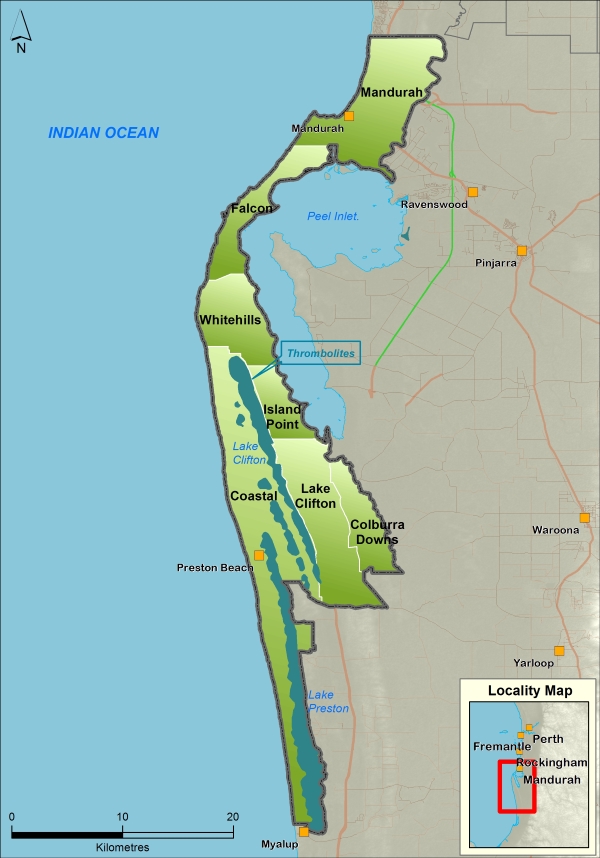 For management purposes, the Peel Coastal plan area is divided into seven subareas – Coastal, Colburra Downs, Falcon, Island Point, Lake Clifton, Mandurah and Whitehills.
